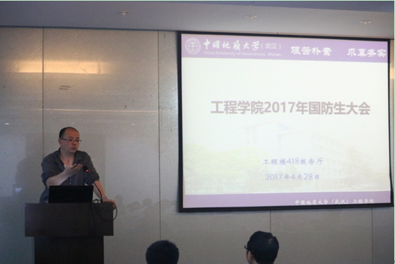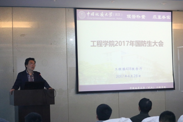 (通讯员:文新)4月28日上午,工程学院2017年国防生大会在工程楼418报告厅召开。院党委副书记江广长,校国防办主任李凛,驻校选培办干事谭皓,辅导员丁继国、文新、王俊以及学院全体国防生参加了大会。