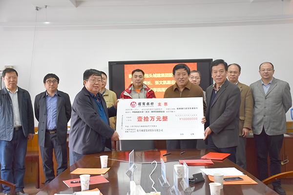 据悉,包头城建集团股份有限公司是包头市唯一的一家集沥青加工生产、机械设备俱全、道路桥梁管网施工一条龙的国家级市政一级综合性施工企业。2016年6月,该公司向我校捐赠10万元,设立“工程学院包头城建创新奖学奖教金”,通过科研立项形式奖励学生参与科技活动。2017年11月,该公司再次向我校捐赠10万元,以进一步浓厚学生创新创业氛围。