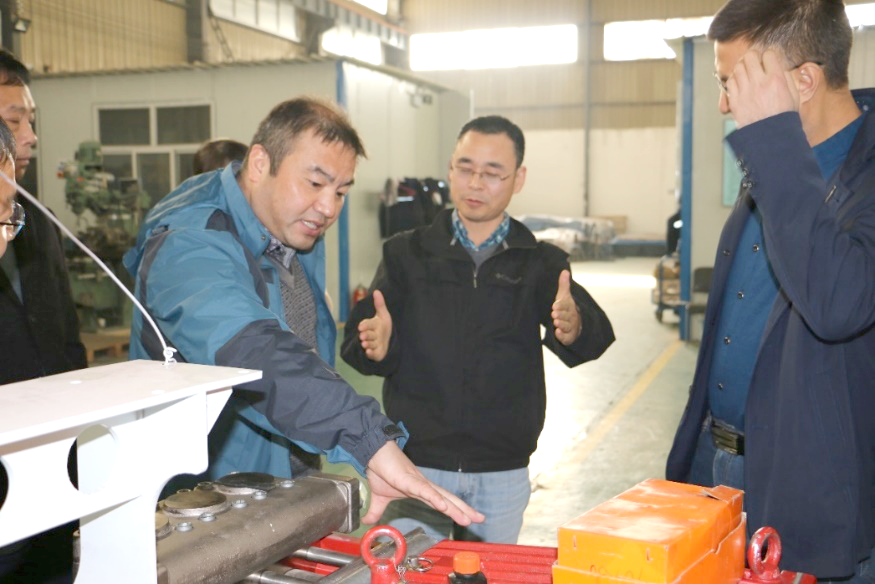 陕西省太合智能钻探有限公司董事长王义红对工程学院领导和专家的到来表示热烈欢迎。他首先详细介绍了企业的发展历程、科研成果以及发展愿景。他表示太合智能公司将不忘初心,砥砺前行。嗣后,专家们参观了目前国内扭矩最大的ZYL-17000D型矿用履带式全液压定向钻机、YSX15矿用有线随钻测量装置、YSX16矿用无线随钻测量系统、随钻测量钻具以及金刚石复合片钻头等系列高新产品,还就细节技术问题驻足讨论。
