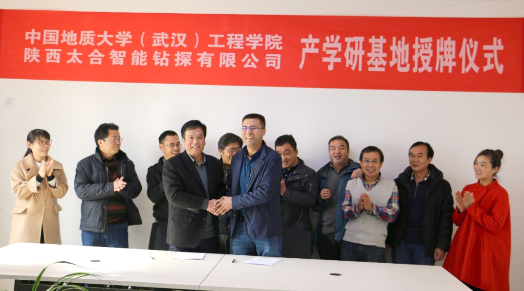 (通讯员:胡郁乐)2017年12月6日上午,陕西太合智能钻探有限公司与中国地质大学(武汉)工程学院在陕西西安签署了产学研实践基地合作协议。陕西太合智能成立于2013年,立足于煤矿安全生产,是一家集装备研发设计、生产加工与技术服务为一体的高新技术企业。公司主要从事矿用钻探设备及配套钻具、仪器仪表、金属与非金属材料的研发、生产及销售。公司一直致力于产品的创新开发。大扭矩定向钻机,高品质异形截面钻杆、智能钻具以及无线MWD、泥浆MWD等产品在行业中竞争优势明显,为矿山开采提供高标准钻探技术与专业化服务。