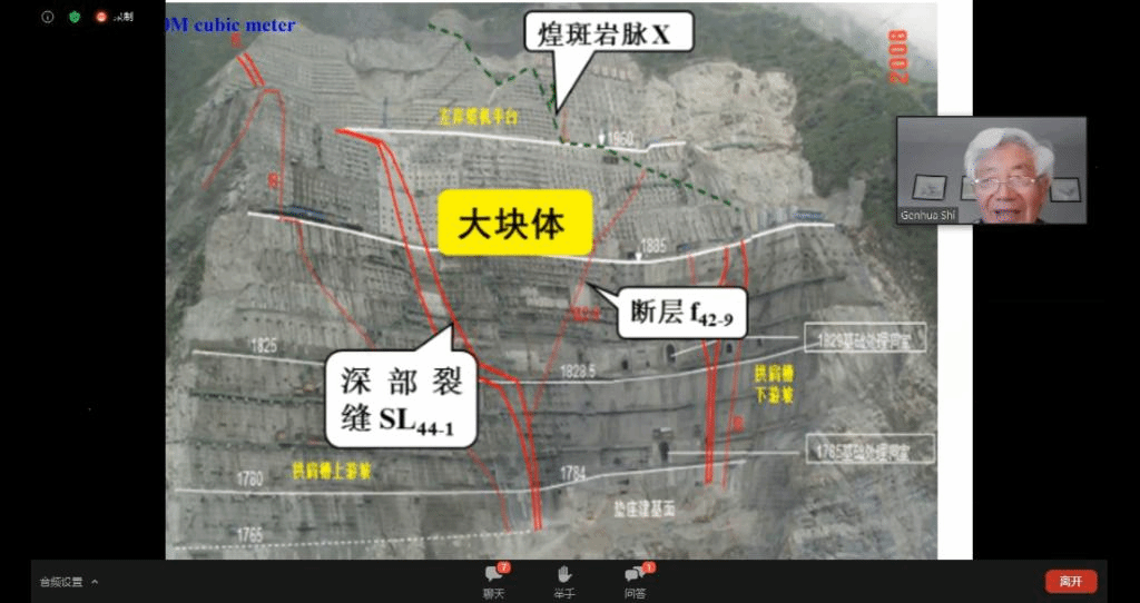 happy漫画 院长焦玉勇教授作为国际岩石力学与岩石工程学会非连续变形分析专委会主席牵头组织并主持了此次云论坛会议,石根华教授基于数十年的关键块体理论研究工作,介绍了关键块体理论的发展、基本原理及采用赤平投影方法将2D关键块体理论拓展的3D关键块体理论,并且用多个实际工程演示了关键块体理论的坝基、硐室分析应用;赵坚教授以岩石动力学实验及实验设备为出发点,简述了霍普金森杆(SHPB)在高加载率动力学实验中的应用和真三轴SHPB的发展过程及其特性与应用领域;沈鲁明教授以气-液-固一体化微观数值计算方法为核心,介绍了CGMD(coarse-grained molecular dynamic)数值方法,详细阐述了CGMD中多相相互作用关系,并以数值实验对CGMD进行验证,最后介绍了CGMD方法模拟CO2-水-SiO2系统各相介质之间的相互作用。
