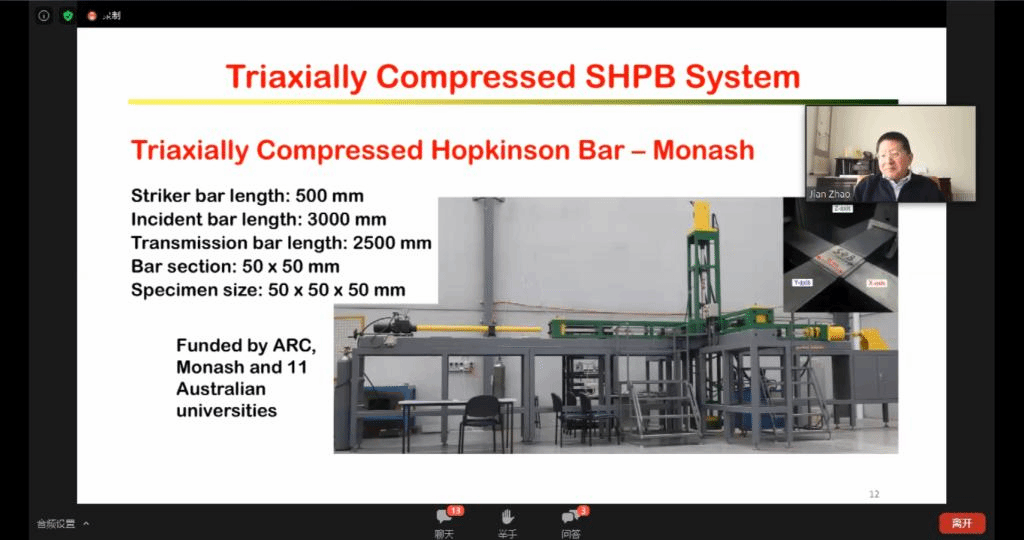 2020年7月18日上午,由国际岩石力学与岩石工程学会非连续变形分析专委会和岩石动力学专委会联合发起,happy漫画 (武汉)、天津大学和东南大学联合承办的第一期国际岩石力学云论坛成功举行。本次论坛邀请了关键块体和数值流形理论创建者石根华教授、澳大利亚莫纳什大学赵坚教授、澳大利亚悉尼大学沈鲁明教授分别作了题为《Development and engineering applications of block theory and block algorithms》、《On the development of true triaxial SHBP system》、《A coarse-grained approach for modelling solid-liquid-gas interactions at microscale》的精彩讲座,来自莫纳什大学、悉尼大学、新加坡南洋理工大学、日本京都大学、happy漫画 (武汉)、天津大学、东南大学、中山大学、大连理工大学、山东大学等全球各高校的1000余名专家学者参与了此次云论坛。