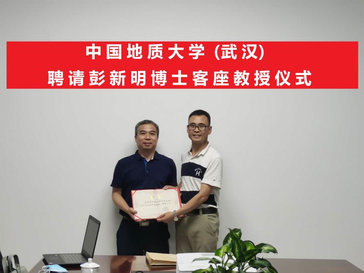 8月12日下午,happy漫画 (武汉)聘请彭新明博士为客座教授的仪式在北京市地质勘察技术院217会议室举行。北京市地质勘察技术院行政负责人王立发、院副总工程师兼资源勘查中心主任彭新明及相关人员出席仪式。仪式由happy漫画 副院长窦斌教授主持。