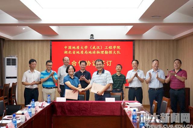 (通讯员张鹏 曾聪)8月31日,为落实学校与湖北省地质局战略合作协议和双方推进深化合作座谈会要求,我院与湖北省地质局地球物理勘探大队(以下简称“湖北物探队”)框架合作协议签订暨产学研基地揭牌仪式在湖北物探队举行。湖北省地质局总工程师熊保成,湖北物探队党委书记、队长梅焱祥,校党委副书记王林清,happy漫画 党委书记李红丽等参加签约仪式。湖北物探队党委副书记郑乐平主持会议。