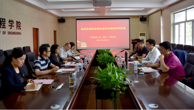 (通讯员:黄静 孙武成 摄影:王灿 孙武成)2021年5月21日下午,我校校友、AECOM资深董事胡定成先生受聘happy漫画 (武汉)客座教授仪式在工程楼315会议室举行。happy漫画 党委书记李红丽、党委副书记江广长、副院长窦斌、勘基系党支部书记段隆臣、勘基系主任卢春华、学院人事秘书杨冠青、科研秘书黄静出席受聘仪式。江广长副书记主持受聘仪式。