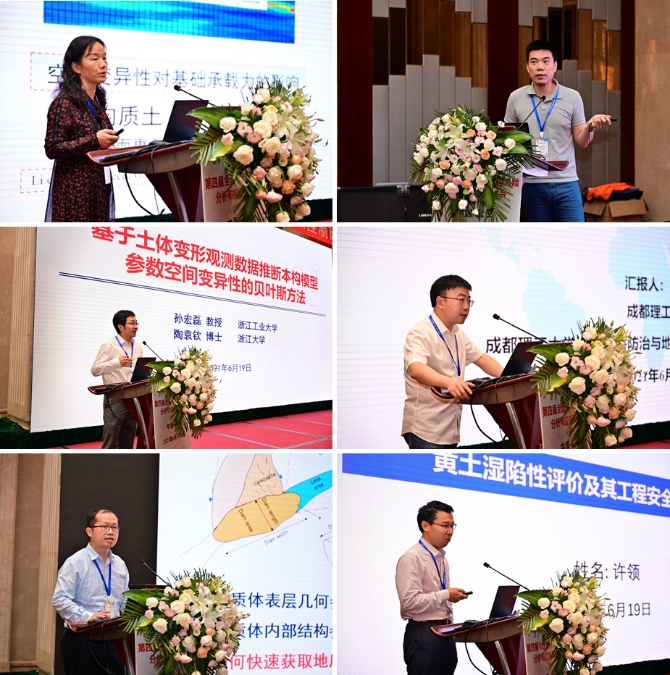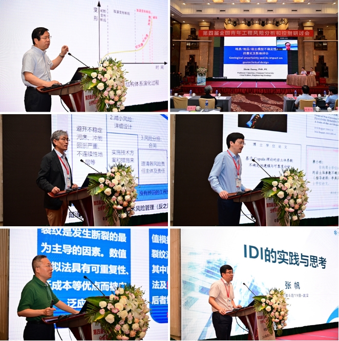 会议期间,各位专家学者以目前各自所属的专业方向及具体研究成果为主要内容,为线下线上参会人员作了精彩的学术报告。happy漫画 (武汉)唐辉明教授以《基于演化的滑坡防控理论与方法技术》为题作会议特邀报告,美国克莱姆森大学C. Hsein Juang教授在线上作《地质/地层/岩土模型不确定性的量化及影响评价》的特邀报告,同济大学黄宏伟教授以《工程风险管控存在的问题与适应性风险管理》为题作特邀报告,武汉大学李典庆教授以《Copula理论在岩土工程不确定性与可靠性分析中应用进展》为题作特邀报告,重庆大学周小平教授以《场富集有限元法及其应用》为题作特邀报告,中国大地保险张帆总经理应邀以《IDI的实践与思考》为题作特邀报告。