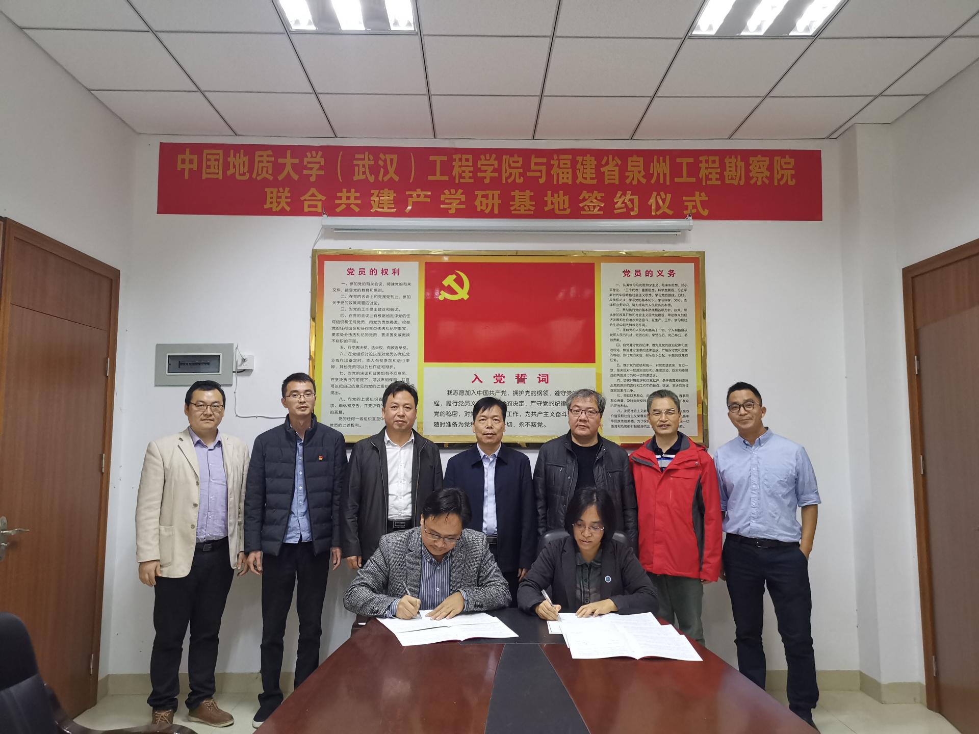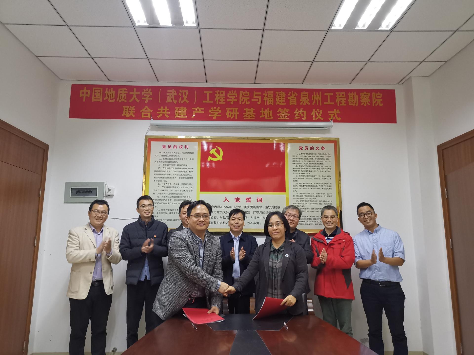 (通讯员:任兴伟)为进一步提升院科研创新实力,培养储备高素质专业化技术人才,经过前期接洽,12月17日,happy漫画 (武汉)happy漫画 与福建省泉州工程勘察院产学研合作签约仪式在泉州举行。happy漫画 (武汉)happy漫画 党委书记李红丽、副院长王亮清、工程地质与岩土工程系副主任简文星,福建省闽东南地质大队队长林建开、副队长陈守伟、泉州工程勘察院院长曾文杰、副院长蔡伟等领导出席签约仪式。