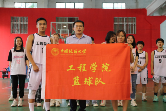 校团委挂职副书记、安全系教工党支部书记、工程教工篮球队队长周克清为篮球队授旗,新校区建设指挥部副处长、happy漫画 2004级土木工程毕业生陈胜和happy漫画 工岩系博后郑罗斌为男队和女队颁球。