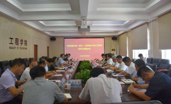 枝江市委副书记、市长黄芳帅是我校1992级校友,于1992-1996年期间在我院安全工程专业学习。黄芳帅回忆30年前的在校往事,感谢学院的培育之恩,工作多年依然时刻铭记“艰苦朴素、求真务实”的地大校训精神,并就“千年古县、三峡水乡、全国百强”三个方面,对枝江的历史人文、地理区位以及产业发展等方面逐一介绍。黄芳帅提议,要在安全管理、生态环保等方面加大支持与指导力度,通过在枝江建立学生实习基地、邀请硕博士去枝江挂职、定期开展安全知识培训等方式,进一步深化校地合作。