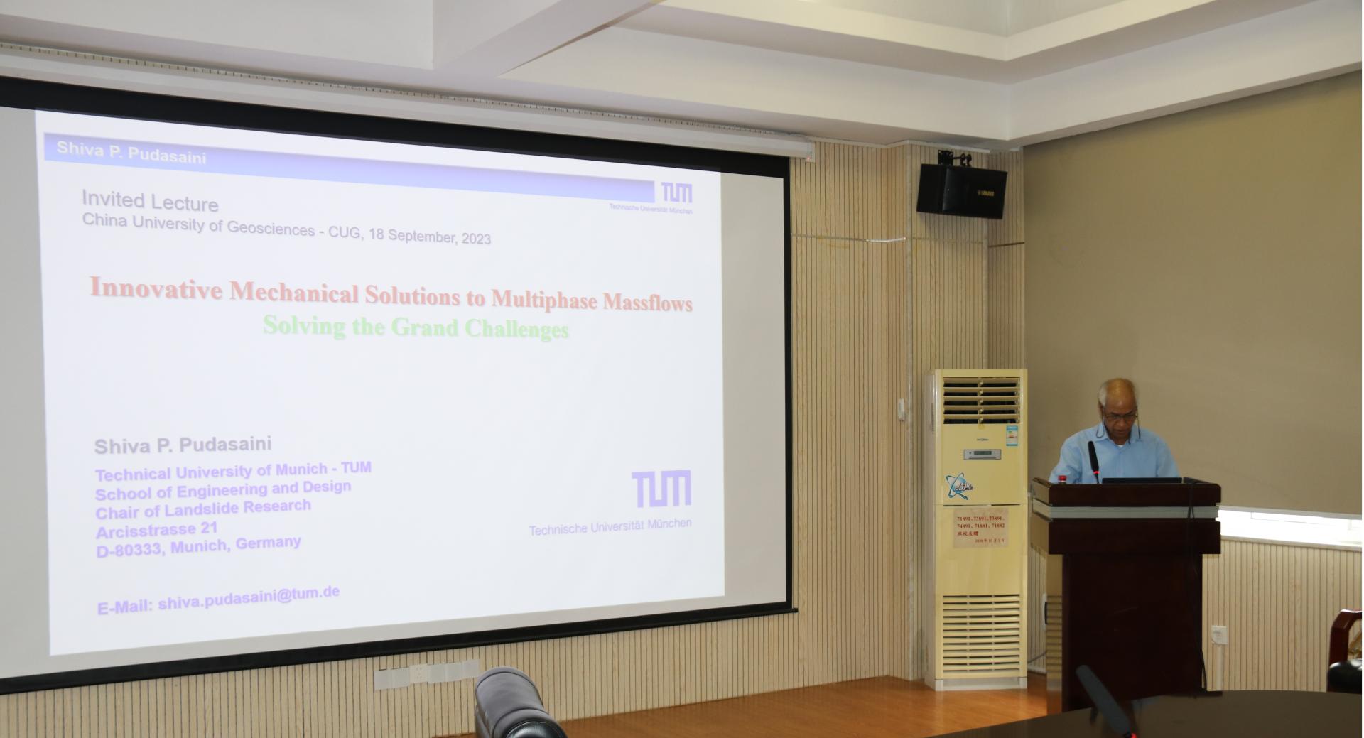 (通讯员 李正伟)2023年9月18日下午,应工程学院和“重大地质灾害预测与防控学科”111创新引智基地唐辉明教授和龚文平教授的邀请,德国慕尼黑工业大学Shiva P. Pudasaini教授来院作学术报告。报告会由龚文平教授主持,40余名师生聆听了此次报告会。