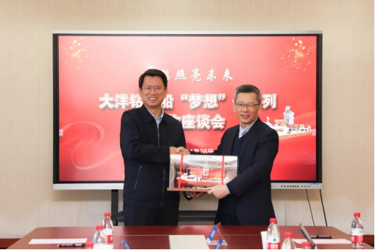 11月26日,中国地质调查局党组成员、副局长颜成义代表中国地质调查局向学校转交感谢信,并向学校赠送“梦想号”大洋钻探船船模。校长李建威代表学校接受船模,校党委书记刘杰代表学校接受感谢信。