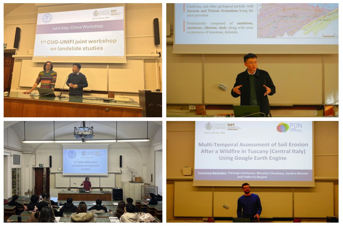 1月8日至9日,工程学院师生和佛罗伦萨大学师生开展了为期2天的中意滑坡研究联合研讨会。工程学院李德营教授、刘书豪老师与朱仕林、佘祥杰、王凯等博士生和佛罗伦萨大学Samuele Segoni教授、 Nicola Nocentini、 Francesco Barbadori、Istan Szakolczai等博士连续开展了十余场专题讲座,内容涵盖“高度植被覆盖地区潜在滑坡的识别”“基于机器学习方法的滑坡时空预测”“考虑地质环境空间差异性的区域滑坡降雨阈值研究”“使用谷歌地球引擎对托斯卡纳山火后的水土流失进行多时间尺度评估”等主题,两校师生就上述主题进行了广泛深入的研讨交流。