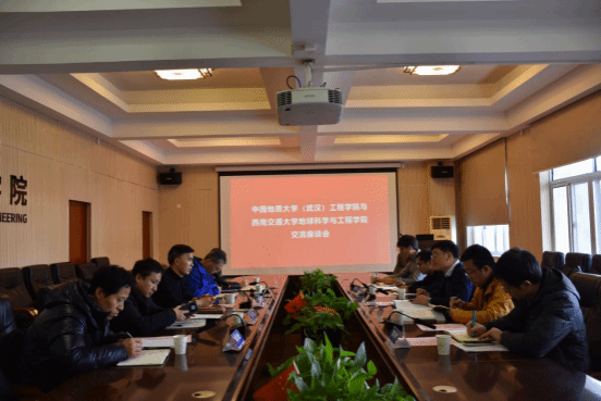(通讯员 王灿)2月18日下午,在工程楼315会议室,西南交通大学地球科学与工程学院副院长赵晓彦、地球科学与工程学院地质工程系副主任廖昕,及杨虎锋、张建和裴秋明等教师一行5人来院交流调研。我校工程学院副院长章广成、工程地质与岩土工程系简文星教授、地球物理与空间信息学院地球信息科学与技术系主任陈涛、工程学院勘察与基础工程工程系副主任张凌、资源学院资源信息工程系副主任陈志军出席会议,副院长章广成主持会议。