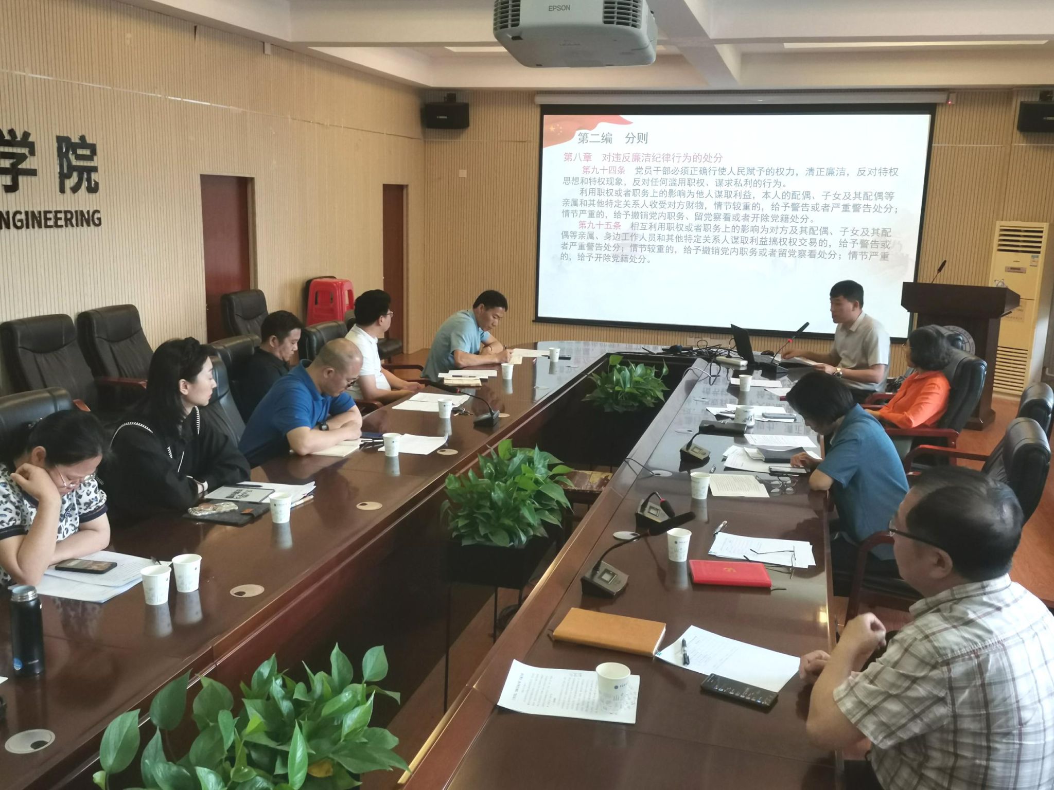 (通讯员 黄燕 高晓东)4月25日,工程学院党委召开党委理论学习中心组(扩大)学习会议暨党纪学习教育专题读书班。学院党委委员、班子成员、纪委委员、教师党支部书记等参加集中学习。党委书记李红丽主持会议。