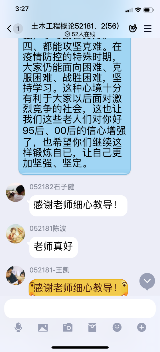 除了云课堂正常授课之外,为了拓宽同学们的视野,增加他们的学习和热情,我系老师还多次组织了校外著名专家学者的讲座授课。3月份,应工程学院副院长王亮清教授邀请,中建三局基础设施建设投资有限公司技术部经理、武汉雷神山医院(医护区)总工贾瑞华高工,在线为我校本科生上专业讲座课并作学术报告。正是有了老师和学生们的共同努力,我系这一学期“停课不停学”的所有课程都达到了圆满的效果。
