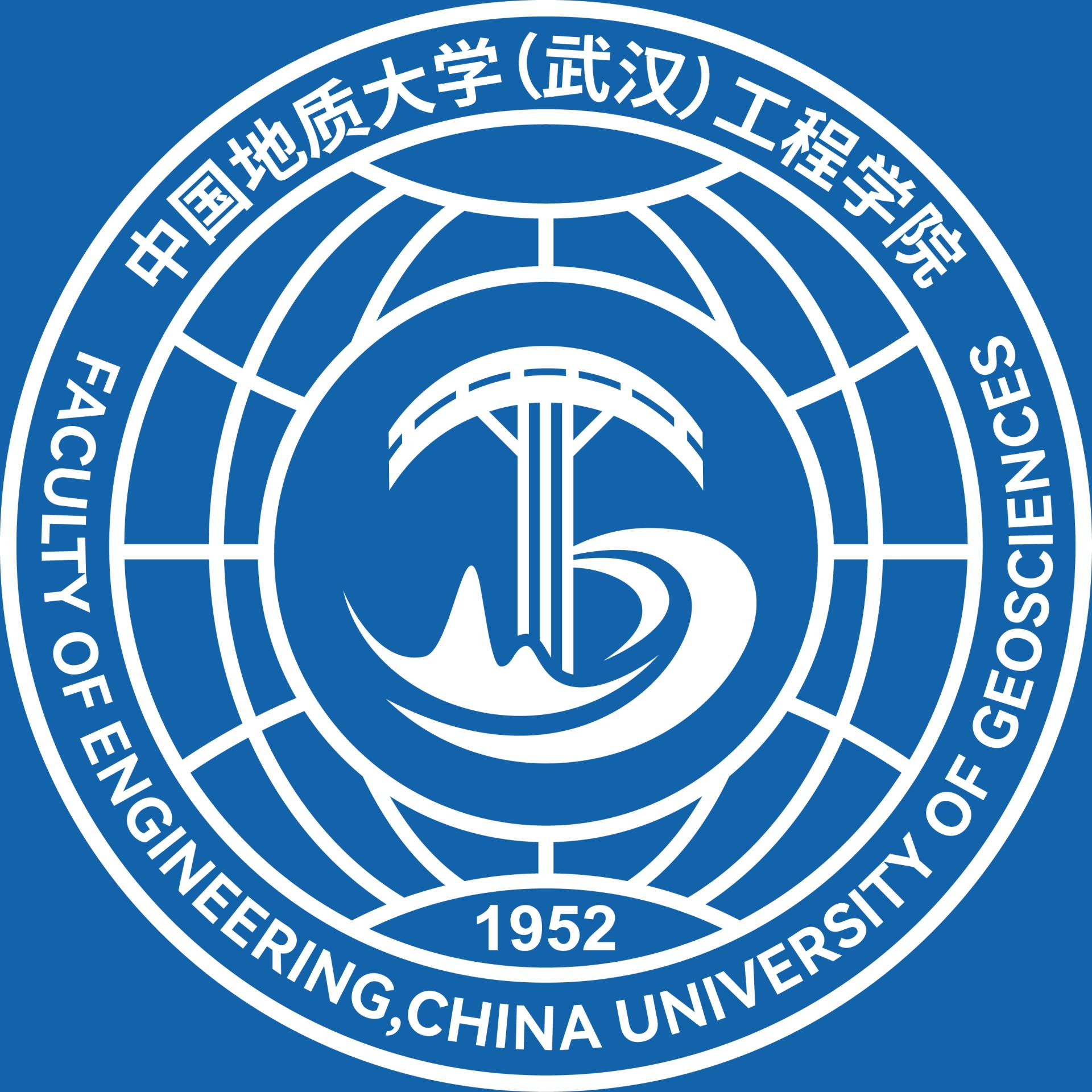 中国地质大学(武汉)工程学院院徽由核心图案、中英文院名和数字“1952”组成。核心图案是将地球、山峦、河流、道路、桥梁、塔吊、地质锤、消防梯等元素抽象化表达后组合而成的象形“工”字,三条竖线挺立于“工”字的中轴线上,代表地质工程、土木工程、安全科学与工程三大学科,凸显学院的优势和地质工科特色;“1952”为学院前身北京地质学院水文地质与工程地质系的建系时间。院徽采用与学校校徽一脉相承的“圆形印章型”和“地大蓝”色调,造型端庄、元素丰富,将流动的曲线与简约的直线巧妙结合,极具教育导向作用和视觉感染力,表达了学院坚持“谋求人与自然和谐发展”,服务“美丽中国、宜居地球”建设,把学院建设成为地质工程与人居安全领域特色鲜明、享誉国际的一流研究型学院的不懈追求。
