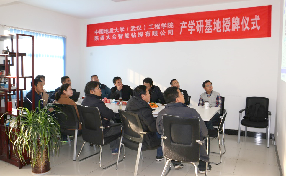 (通讯员:胡郁乐)2017年12月6日上午,陕西太合智能钻探有限公司与中国地质大学(武汉)工程学院在陕西西安签署了产学研实践基地合作协议。陕西太合智能成立于2013年,立足于煤矿安全生产,是一家集装备研发设计、生产加工与技术服务为一体的高新技术企业。公司主要从事矿用钻探设备及配套钻具、仪器仪表、金属与非金属材料的研发、生产及销售。公司一直致力于产品的创新开发。大扭矩定向钻机,高品质异形截面钻杆、智能钻具以及无线MWD、泥浆MWD等产品在行业中竞争优势明显,为矿山开采提供高标准钻探技术与专业化服务。