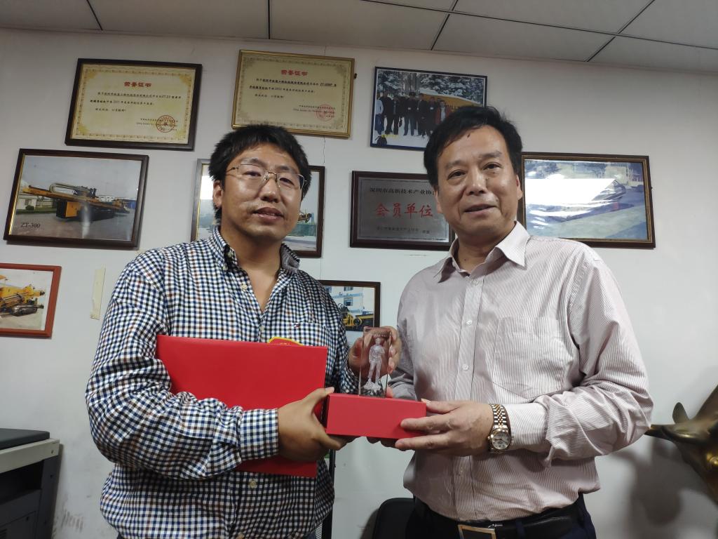 11月23日,happy漫画 党委书记陈飞一行前往深圳市钻通工程机械股份有限公司,看望“徐亮助学金”捐赠者徐亮校友。