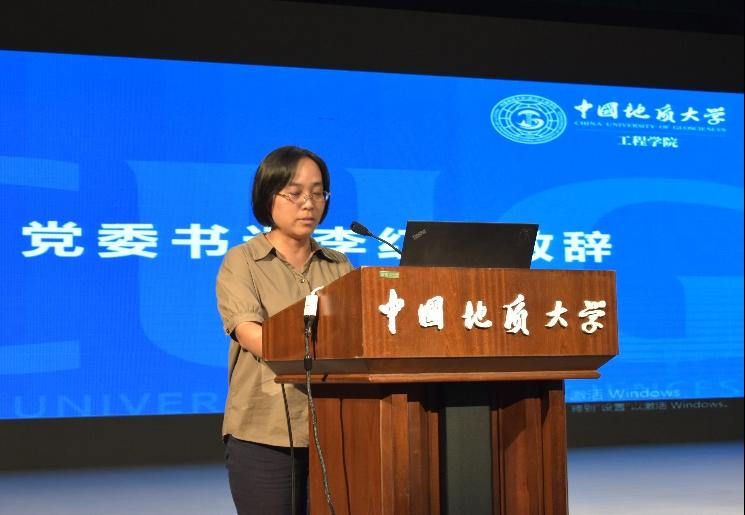 党委书记李红丽对856名新工程人表示热烈的欢迎。她从四个方面对新生提出期望:其一,要明辨是非、通晓道理。面对加速演进的时代变局,不盲目权威,不轻信谣言。坚守正义,行稳致远,争做品学兼优的高层次人才;其二,要崇尚务实,知行合一。立足自身优势,遵循成长规律,坚持厚积薄发,成长为真善美的新时代工程人。其三,要开拓创新,追求真理。努力培养独立思考的能力,秉持求真精神与好奇之心。勤奋学习,刻苦钻研,立志成为地质工程领域的骨干力量。其四,要坚守初心,砥砺前行。在接下来的学业生涯中攻坚克难,锻造本领,秉持“明理、尚实、拓新、砺行”的院训精神,拓展格局与视野,争做追求卓越新青年。