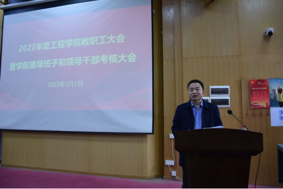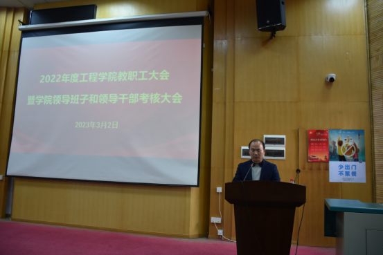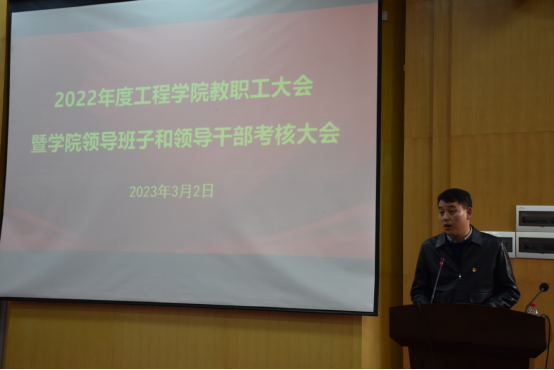 2023年3月2日下午,工程学院在教三楼109召开全院教职工大会,总结2022年度学院工作并部署2023年度重点工作。院领导班子、全院教职工及学生代表参加会议,会议由学院党委书记李红丽主持。