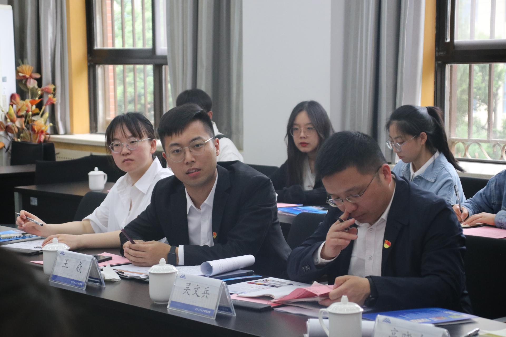 卢春华从历史沿革、目标定位、学科平台、师资队伍、人才培养、科学研究等七个方面介绍了工程学院的整体情况。吴文兵以“‘党建+业务’双融双促”为主题,介绍了工程学院勘察与基础工程系党支部建设情况。王焱介绍了工程学院学生党建工作基本情况和建设思路。