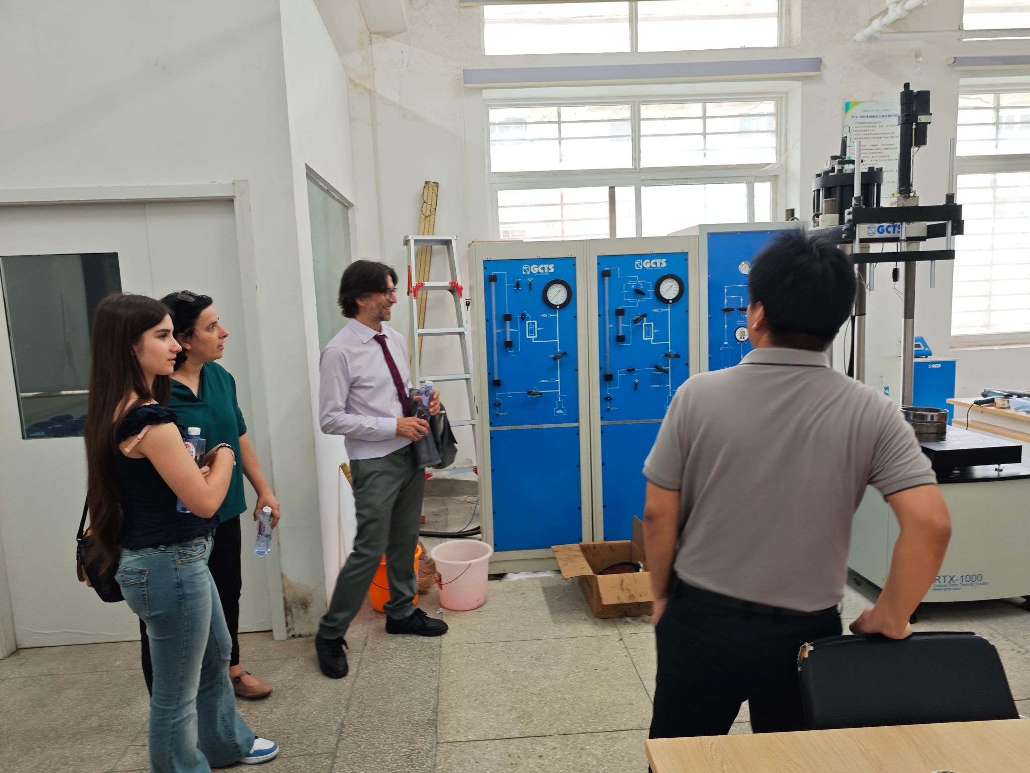 接着,Segoni 和工程学院副院长章广成教授、党委副书记高晓东共同探讨了后期国际交流合作的相关事宜,并参观了工程学院非饱和土、多相多场耦合、岩土CT扫描等实验室。