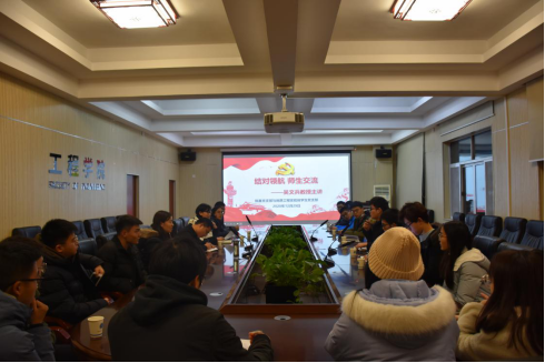 12月31日中午12:30,工程学院院直属党支部与工程学院地质工程实验班本科生党支部在工程楼315会议室举行了结对领航“寒冬送暖迎新年”活动,出席活动的有李红丽书记、张美霞老师、杨冠青老师、陈婵老师、黄静老师及地质工程实验班的学生代表。