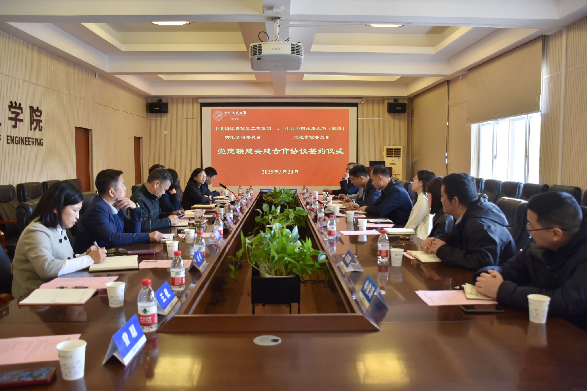 (通讯员 黄燕)为深入贯彻落实党的二十大和党的二十届三中全会精神,贯彻落实全国两会精神,进一步推动党建与业务深度融合,加强校企合作,实现资源共享、优势互补,2025年3月20日,工程学院与浙江省隧道工程集团有限公司在工程学院会议室就党建联建、人才培养、科研创新等方面开展座谈交流并签署党建联建共建合作协议。浙江省隧道工程集团有限公司党委书记、董事长、总经理李桂来,党委副书记、董事、工会主席谢常才,党委委员、总会计师张赛花,工程学院党委书记李红丽,党委副书记、院长王亮清,党委委员、副院长窦斌,副院长倪晓阳,学术副院长吴文兵,双方相关人员参加会议。李红丽主持会议。