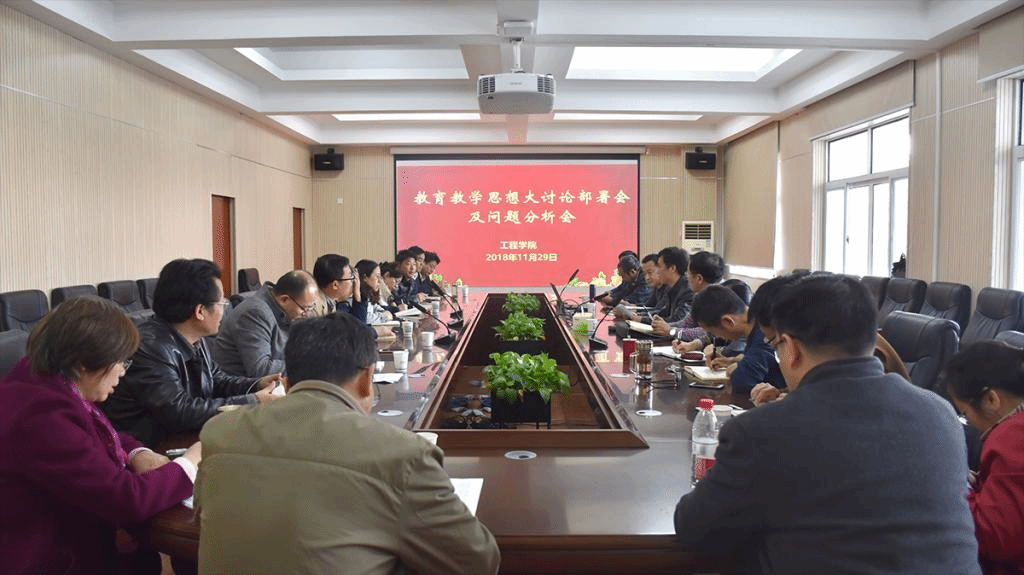 工程学院于2018年11月29日下午14:00在工程楼315会议室,召开了“工程学院教育教学思想大讨论部署会及问题分析会”。参加会议的有学院党政领导和各系主任、支部书记及学科带头人。会议由党委书记陈飞主持,此次会议目的是提高认识,统一思想,落实行动。